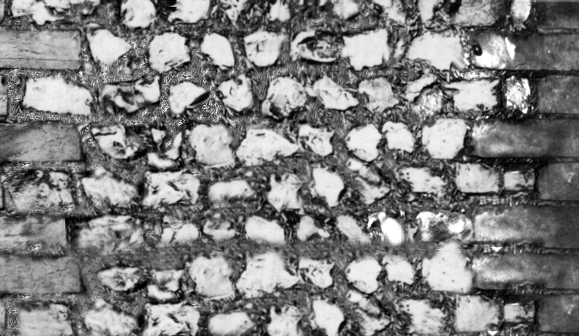 Bungaroush walls are normally rendered with an external stucco or an internal plaster. In situations where the bungaroush is to form an external wall without the benefit of a render layer, the rapid erosion of the wall by water could be prevented by the adoption of a ‘galetted’ finish. This is where small flint chips were pushed into the wall, sometimes in a downward sloping direction, to shed water. Although designed as a cheap, fast walling system, high quality grey lime mortar and a good quality render or, where appropriate, galetting, has ensured considerable stability and longevity. Good examples bungaroush walling can often be found in roof spaces and basement cellar walls.