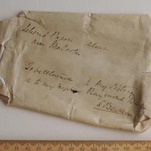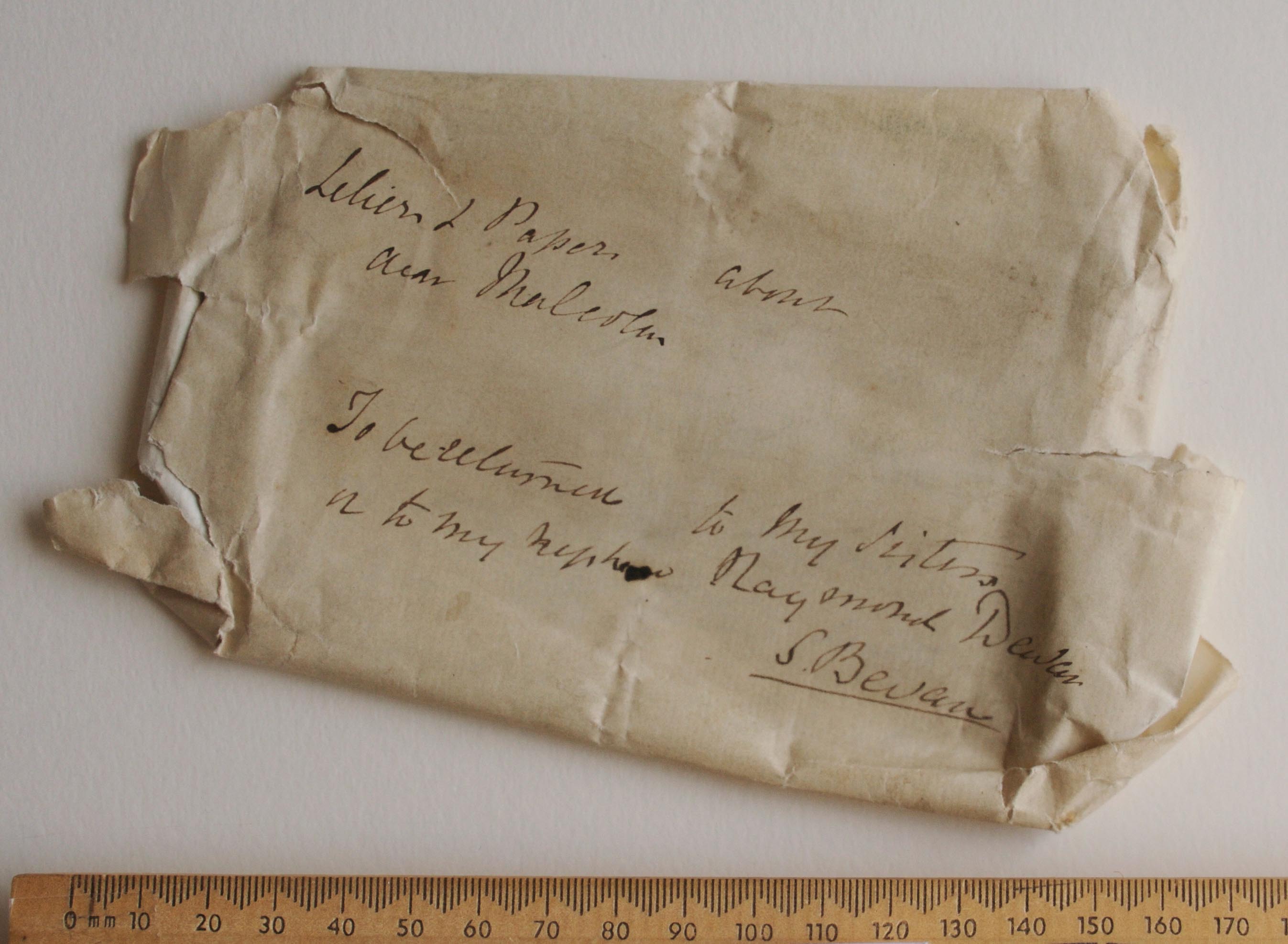 [In folded sheet and marked:] Letters & Papers about dear Malcolm. To be returned to my sisters or to my nephew Raymond Dewar [and signed] S. Bevan