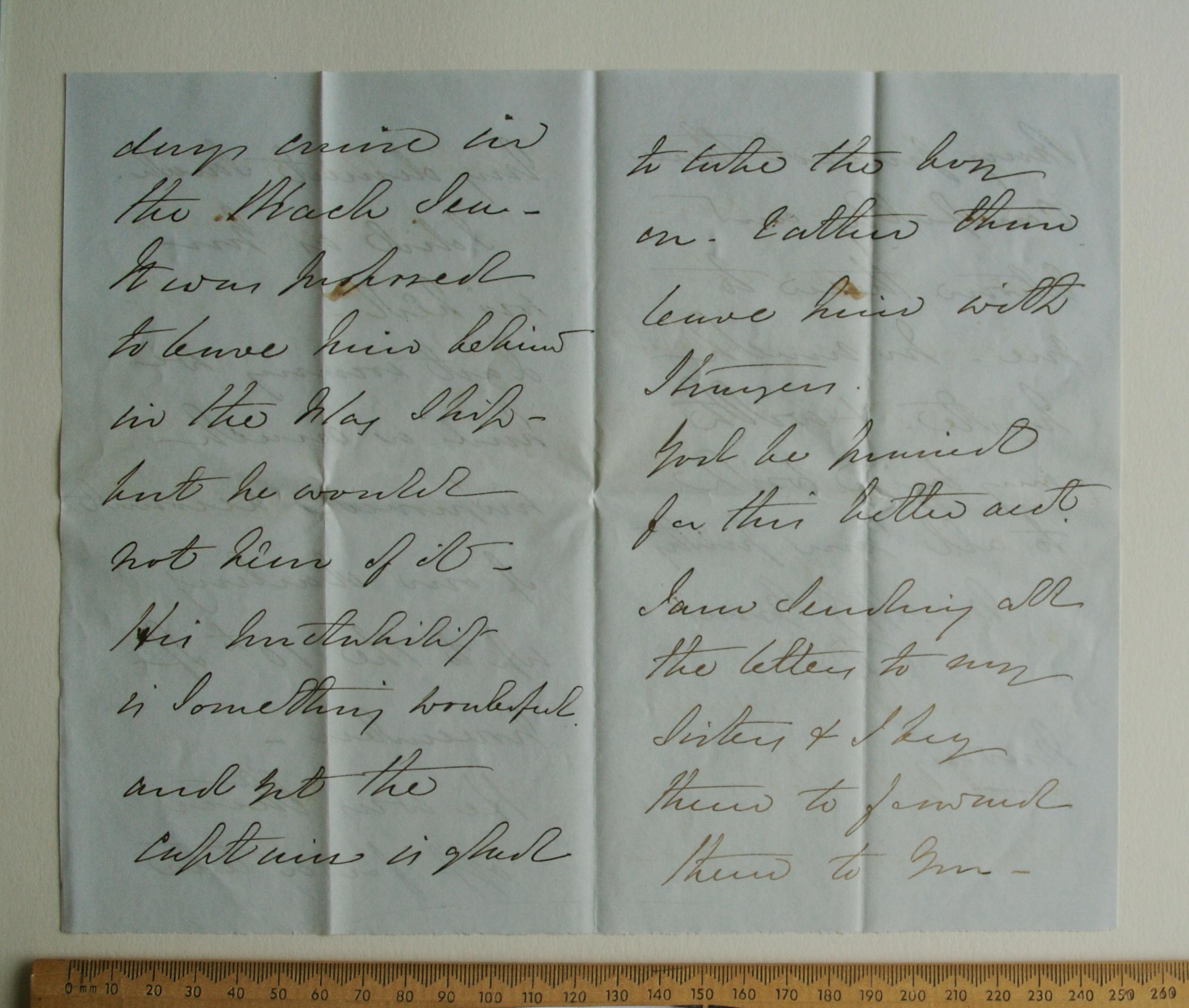 He was then off for a ten day cruise in the Black Sea. It was proposed to leave him behind in the flag ship - but he would not hear of it - his [-] [barely legible text] is something wonderful yet the captain is glad to take the boy on - rather than leave him with strangers.