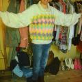 Yvonne models a home knitted jumper at the Bric a Brac sale.