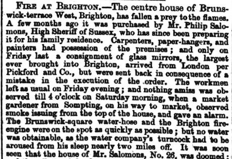 By about 1850 Philip Salomons had acquired 26 Brunswick Terrace.  The reasons for this may have been twofold. Philip’s two younger sisters were each married to the brothers of Sir Isaac Lyon Goldsmid who had been instrumental in the creation of Brunswick Town. Philip would have been aware that living in Brunswick Town gave him equal social standing in a society that was still riven with antisemitism. (He already had a cousin, Joseph Salomons, living at 44 Brunswick Place.)