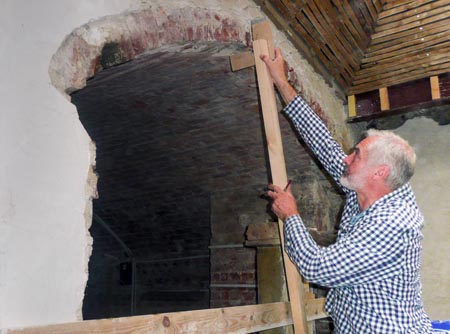 A member of our Historic Building Services Team, Nick Tyson, demonstrating a traditional plastering method on site in Hove.