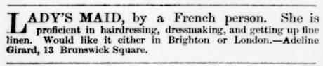 Some servants advertised themselves as did Adeline Girard living at number 13 in 1856.