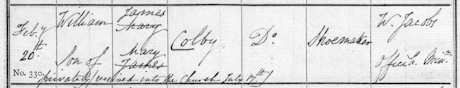 William Colby was born in Bletchingdon on 20 February 1831, his father was James and his mother Mary. The certificate states he was “privately received into the church on July 17th.