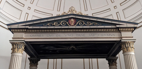 ‘We All Partake of the One Bread’ on Pediment – Photo S.M. Allen