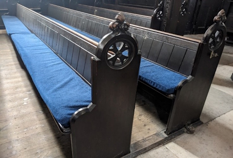 However, in 1869 the church was radically restored by the Rev. Daniel Winham, who replaced the seating with open carved oak benches.