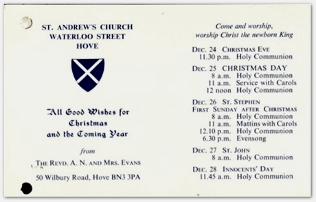 In 1981 a combined choir of 100 members walked in procession from St. Andrew’s to the Brunswick Lawns, where an open-air service was held, celebrating the 1,300th anniversary of the arrival of Christianity in Sussex.