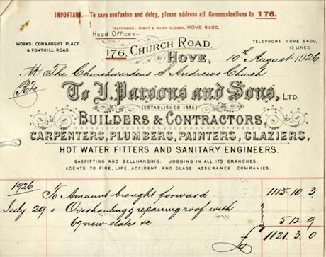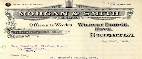 Part of Morgan and Smith’s Estimate for Organ repair 1925 (£280)