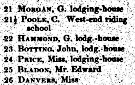 The 1856 Folthorps Directory lists the West End Riding school at 21½ (for the first time) and the name of C.Poole as shown below.