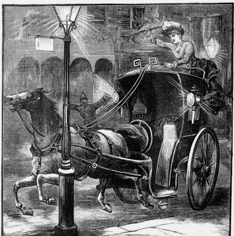 The Hansom Cab was primarily used as a public hire vehicle but privately owned Hansom cabs might have had appeal to a middle-class couple for convenience and modesty. It had two wheels and a small, enclosed seating area. It was a practical carriage for transportation around town and needed just one horse.