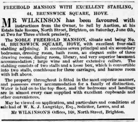 Brighton Gazette 28 May 1863 - sale of 44 Brunswick Square