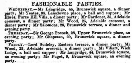 In the Brighton Gazette, January 1860 Mr & Mrs & Misses (x2) Langridge were mentioned as attending the large Military Ball at the Pavilion and in the same Newspaper as giving an Evening Party at 44 Brunswick Square. They were prominent socialites.