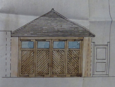 The architect, A.H. Lainson’s front elevation of the proposed garage. Note the door leading to the trades entrance down the side