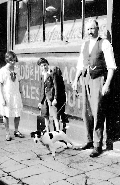 George Pudney with his niece and nephew Joyce and Sidney Brown outside the Station Inn 1927. The Kidd & Hotblack sign below the window was changed to read Station Inn the following year. (Courtesy of Philip Godsiff)