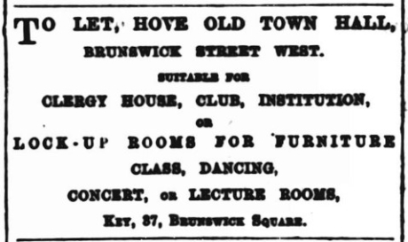 Brighton Gazette 15 Jun 1886 advertising Hove Old Town Hall to let