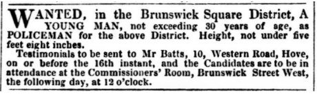 Anyway, the Brunswick Commissioners appointed a Steyning man by name of George Breach. He was joined the next year by his wife, Susannah and in 1840 by their son, George Benjamin. There was however an unfortunate early hiccup in George’s career when, in December 1838, he was disciplined for “gross misconduct”. He had been found in a public house “outside the district”, was reprimanded and lost a week’s pay. It was a breach (no pun intended) of his duty but the incident seems to have proved a salutary experience for thereafter he was to have a long, successful and illustrious 42-year career.