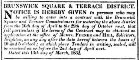 Advert for ‘Watering the streets’ - Brighton Guardian - 14 March 1832