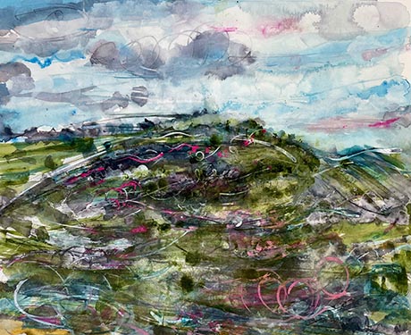 Mark Wilson, A Wide Sky, Oil on Card 63 x 32cm