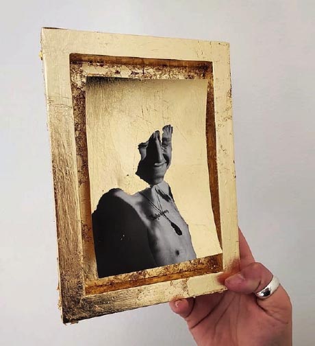 Most recently the work has started examining different aspects of spirituality and belief, surfacing as art which combines gilding with photography. Both creating and re-creating habitual rituals undertaken and influenced by her father.